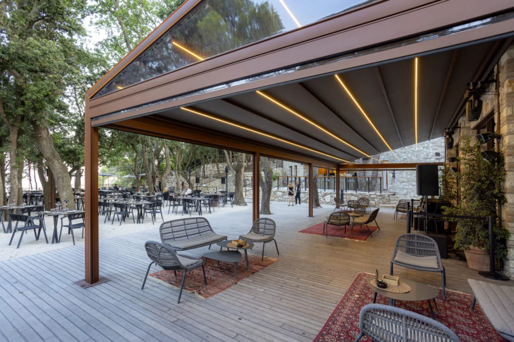 La tenda scorrevole garantisce non solo impermeabilità e resistenza, ma anche la massima protezione in ogni stagione. Durante i mesi più freddi, potrete continuare a sfruttare il vostro spazio esterno grazie alla possibilità di installare profili laterali verticali apribili, che proteggono dal freddo e dal vento senza rinunciare alla luminosità e al contatto con l’esterno. Che si tratti di una cena all’aperto, di un momento di relax o di un incontro con amici, la Pergotenda saprà offrirvi un ambiente unico e confortevole in ogni occasione.